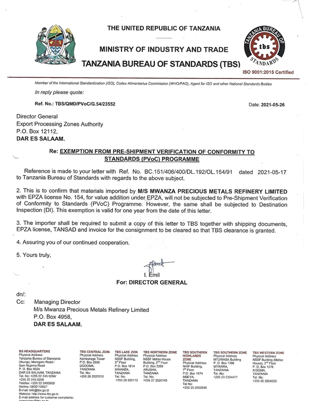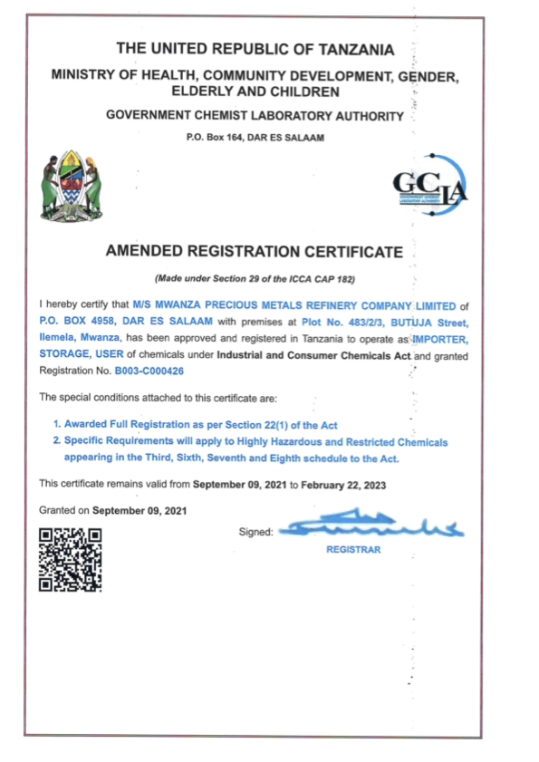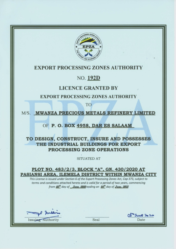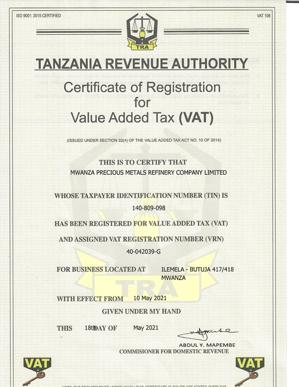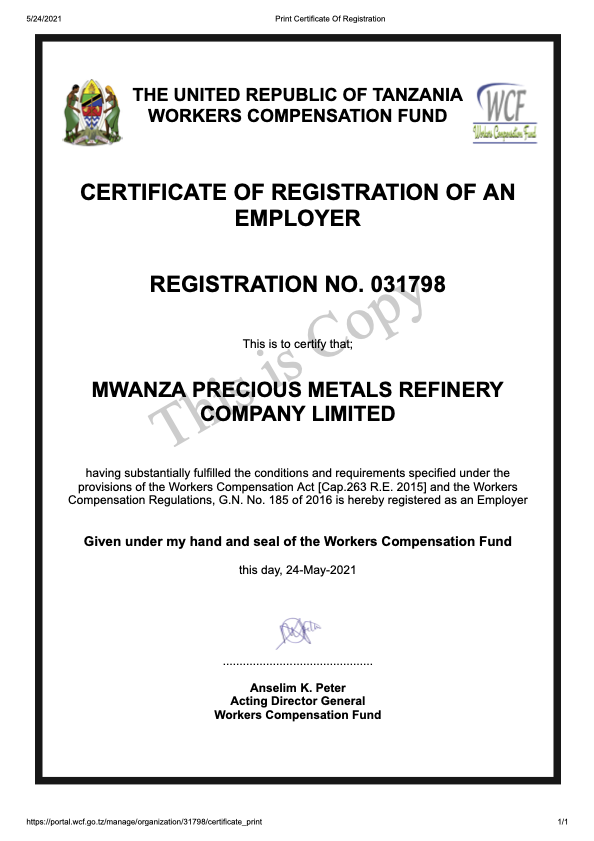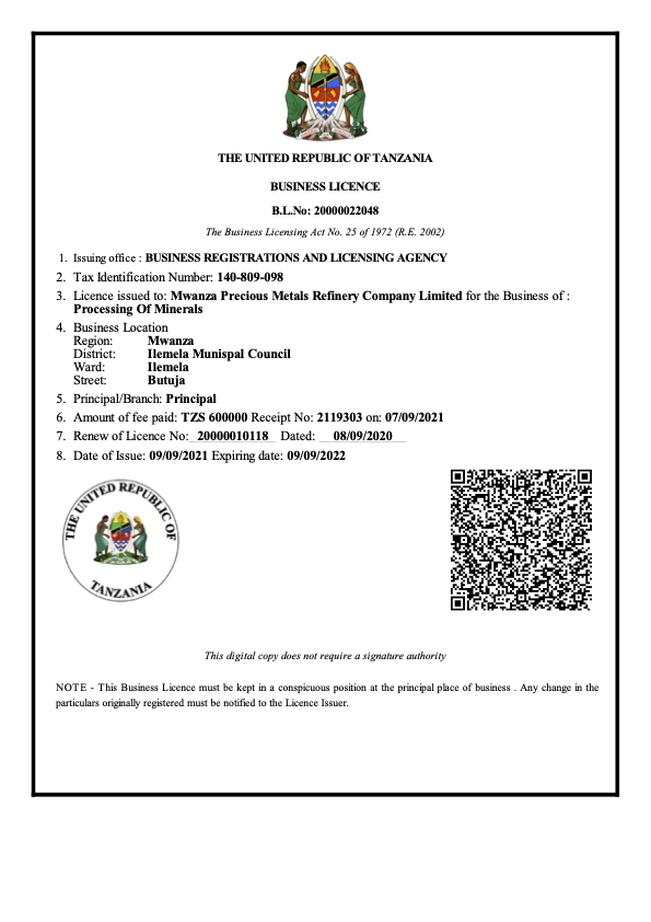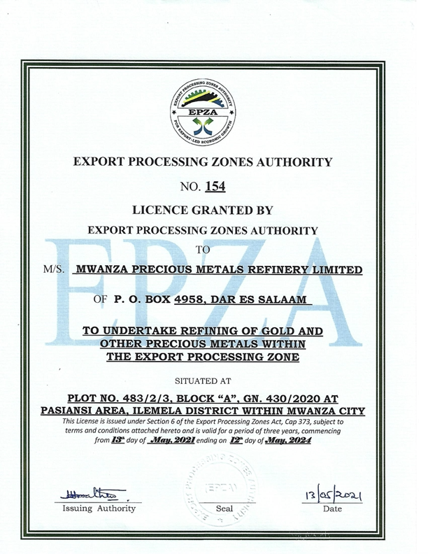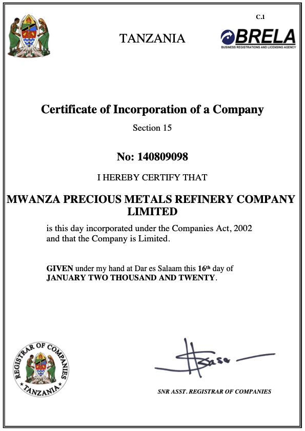MWANZA PRECIOUS METAL REFINERY COMPANY LIMITED © 2021. All Rights Reserved.