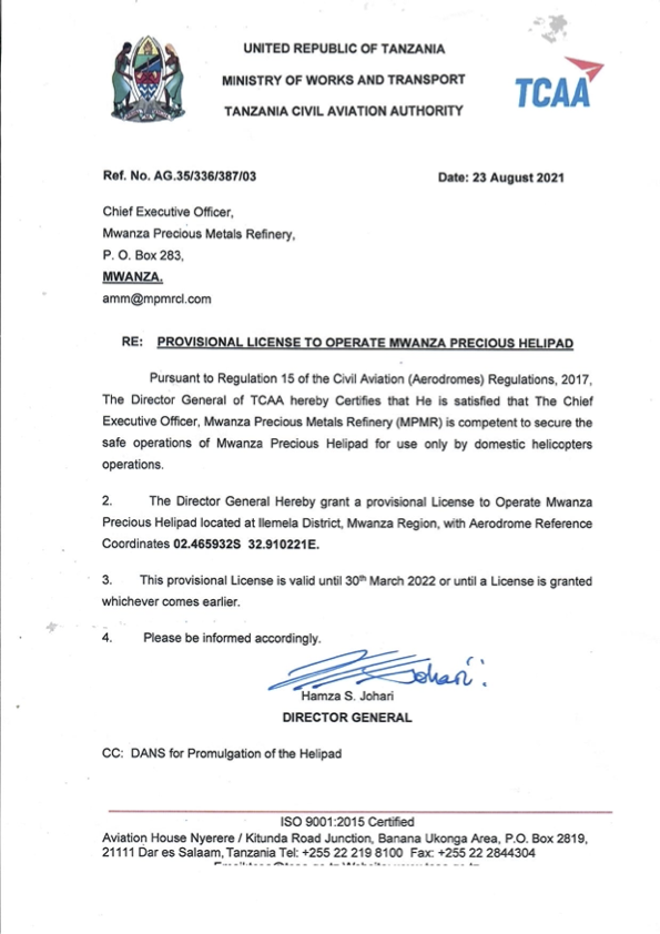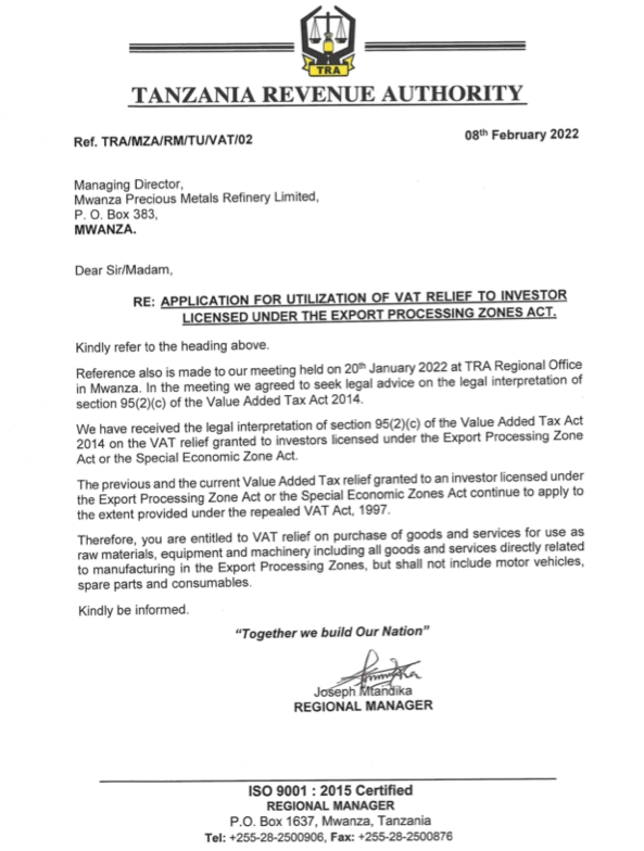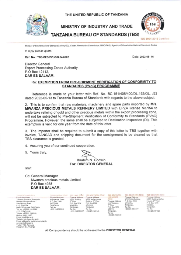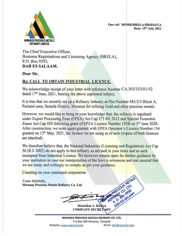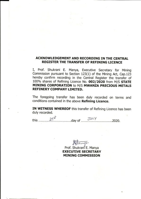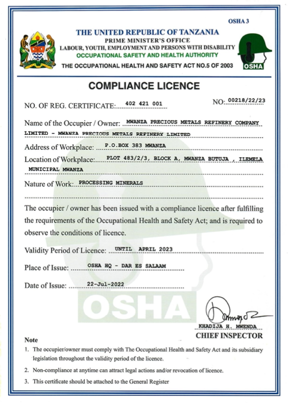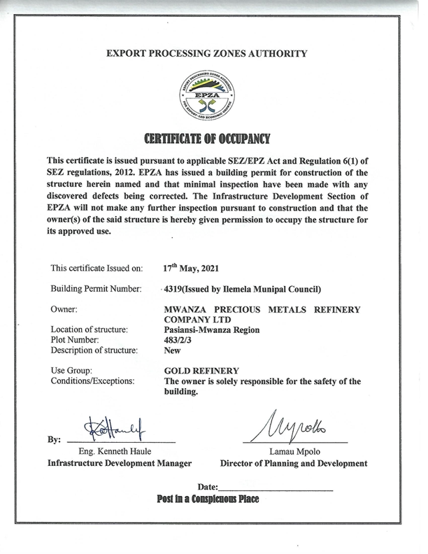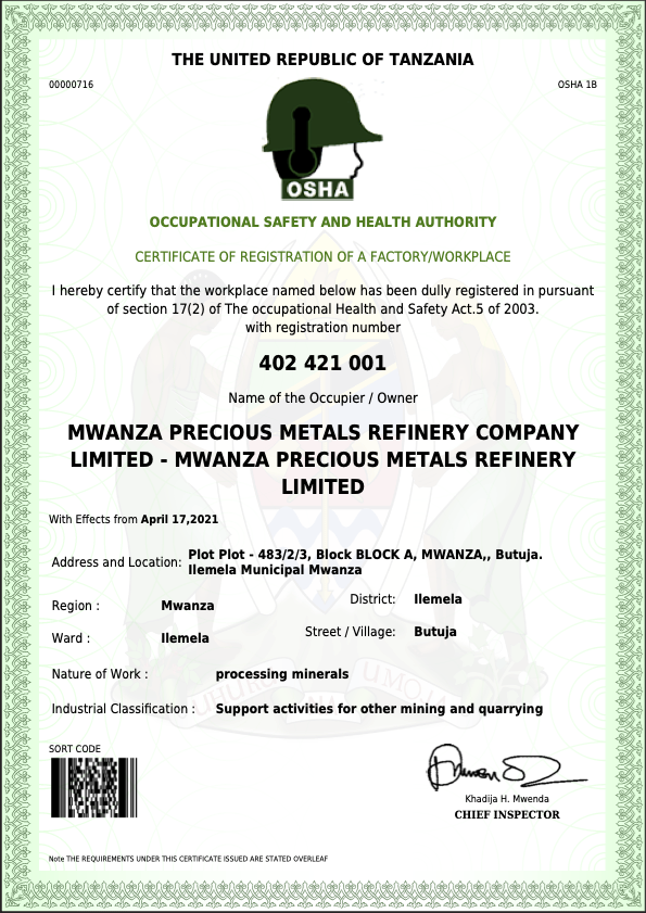 MWANZA PRECIOUS METAL REFINERY COMPANY LIMITED © 2021. All Rights Reserved.