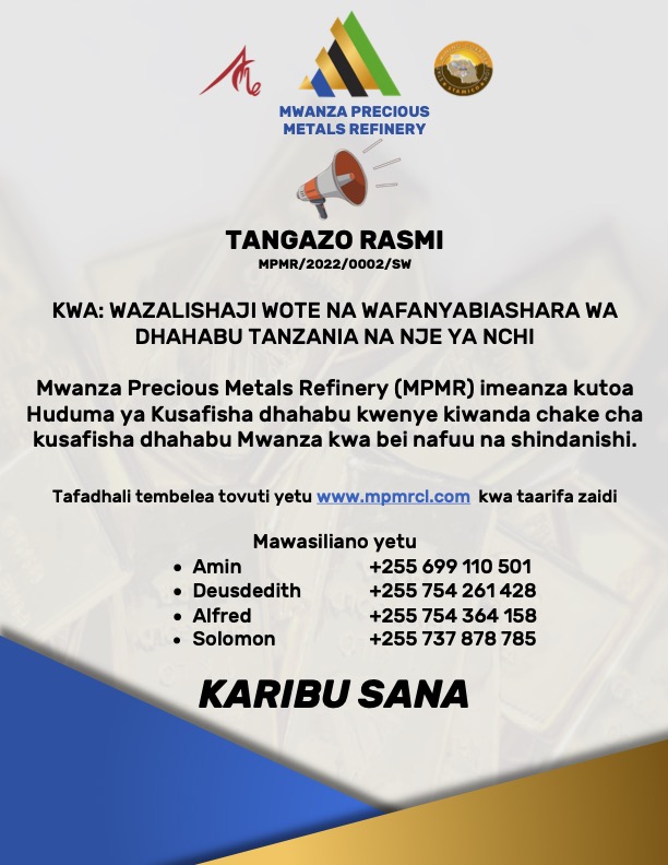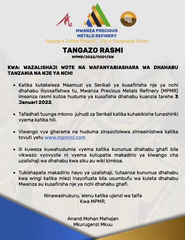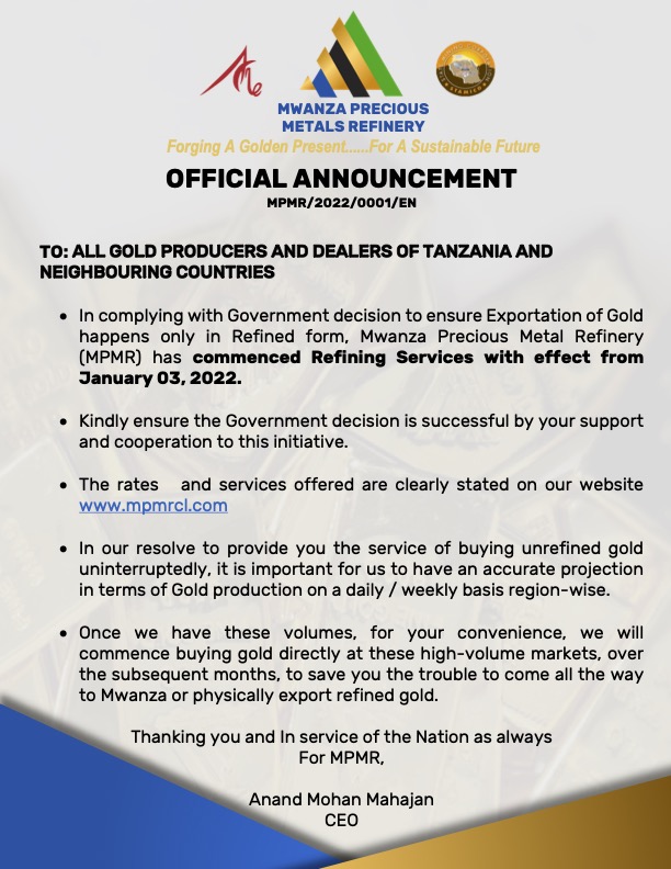 MWANZA PRECIOUS METAL REFINERY COMPANY LIMITED © 2022. All Rights Reserved.
